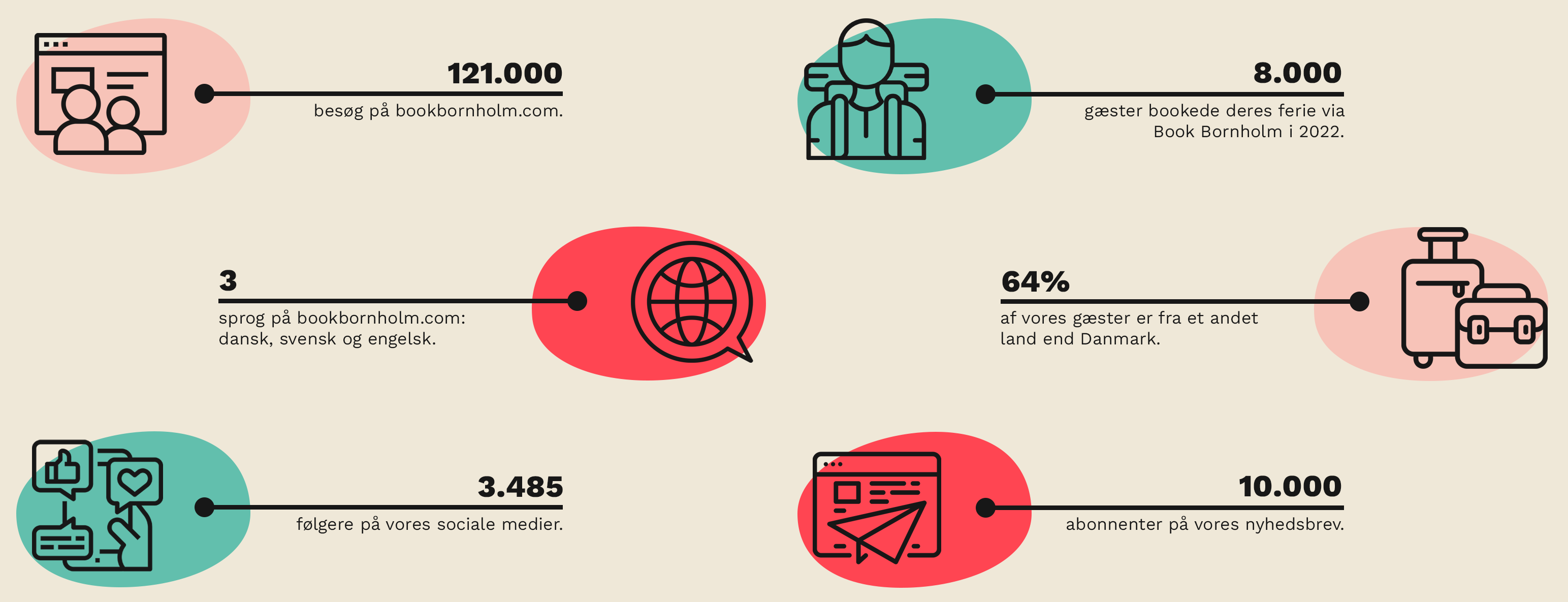 Vi markedsfører din virksomhed bredt på vores sociale og digitale kanaler, ligesom du bliver en vigtig del af vores generelle markedsføring af Bornholm som feriedestination året rundt.